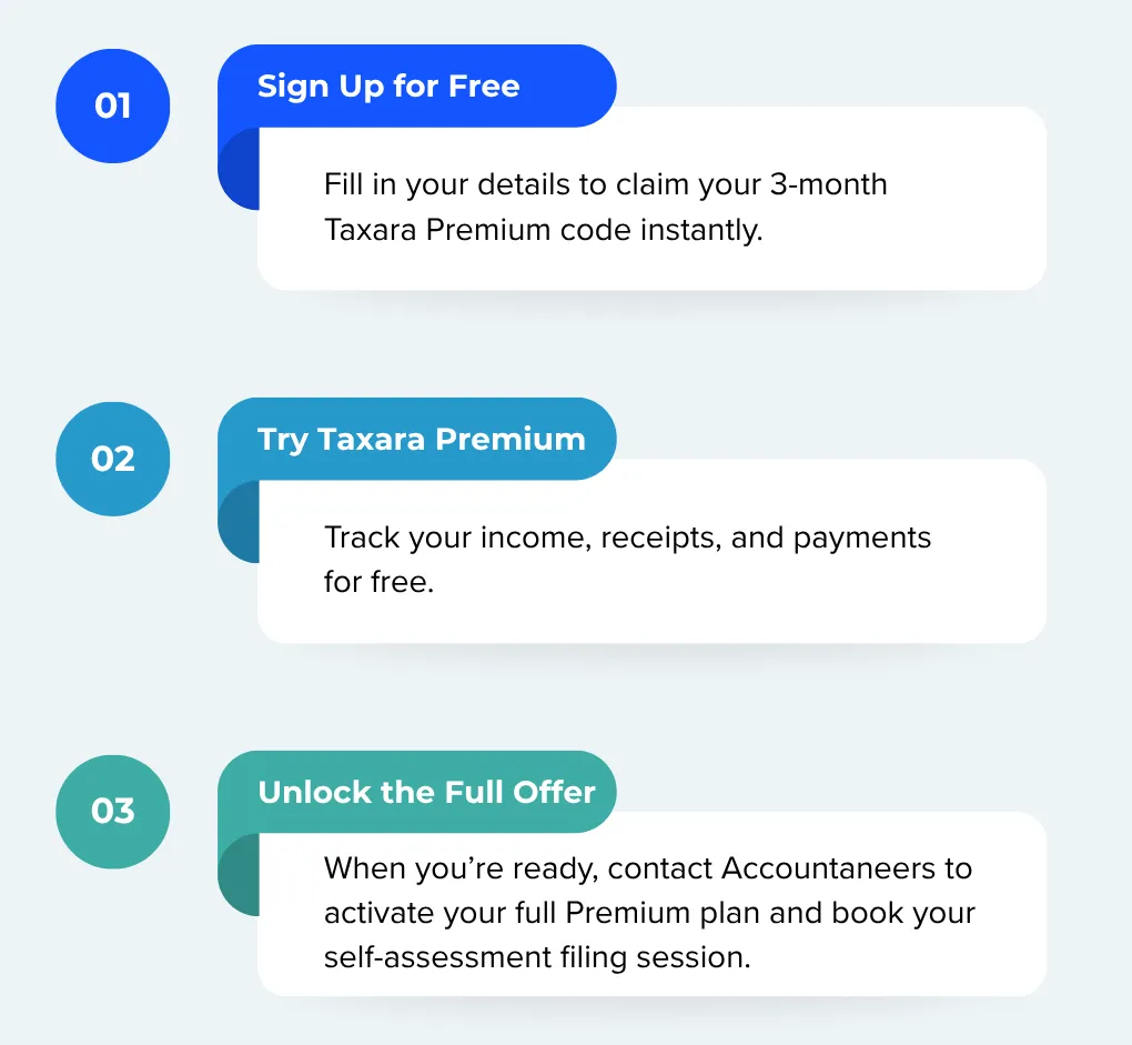 Start with 3 months of Taxara Premium free and discover how easy it is to manage your income, expenses, and taxes with AI — all in one app.